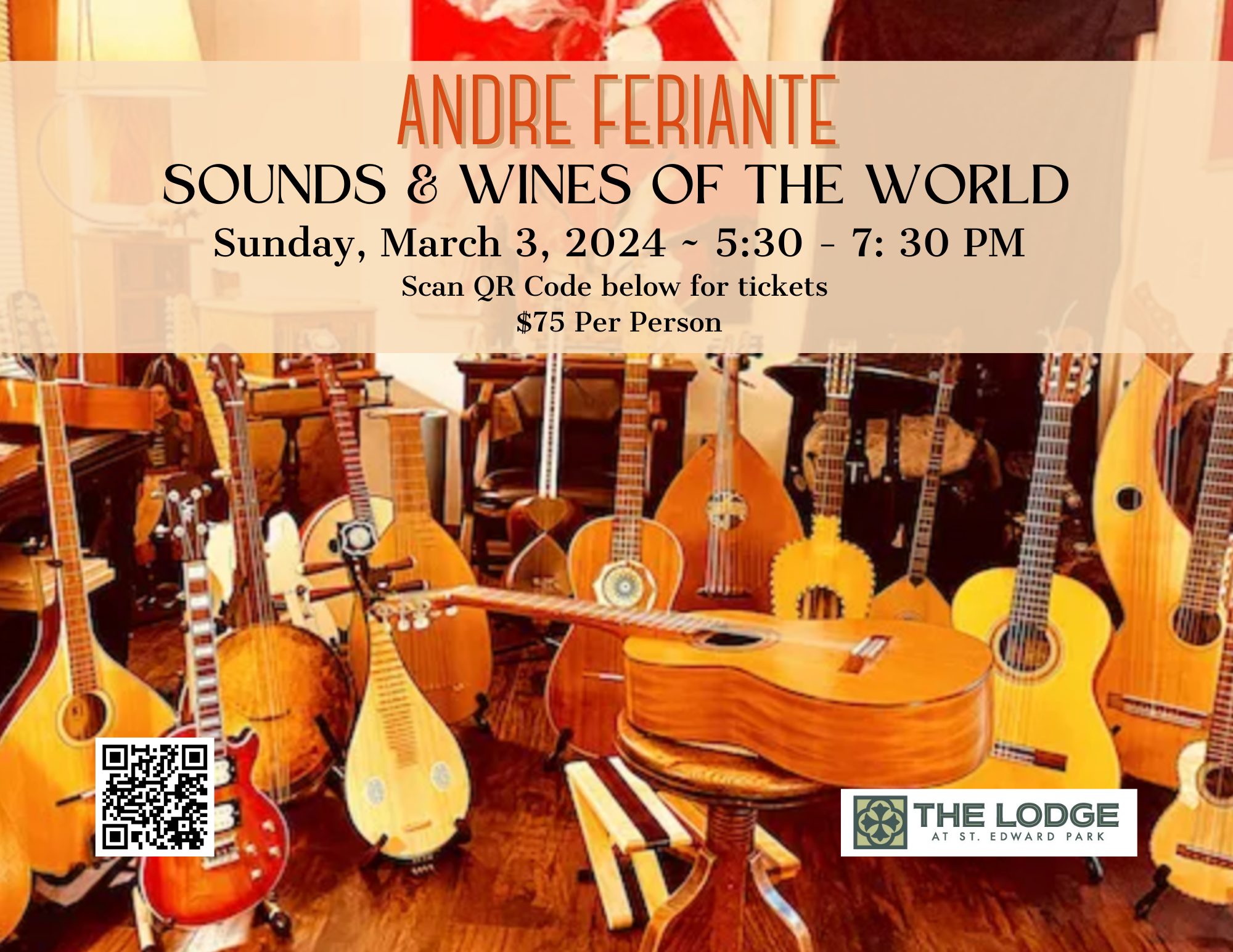 Join us for an evening of international music and a menu full of flavors of the world Sunday, March 3rd at The Lodge at St Edward Park. Guitar virtuoso and multi-instrumentalist Andre Feriante will host a night of sounds and wines of the world. Join guitar virtuoso and multi-instrumentalist Andre Feriante for a night of […]