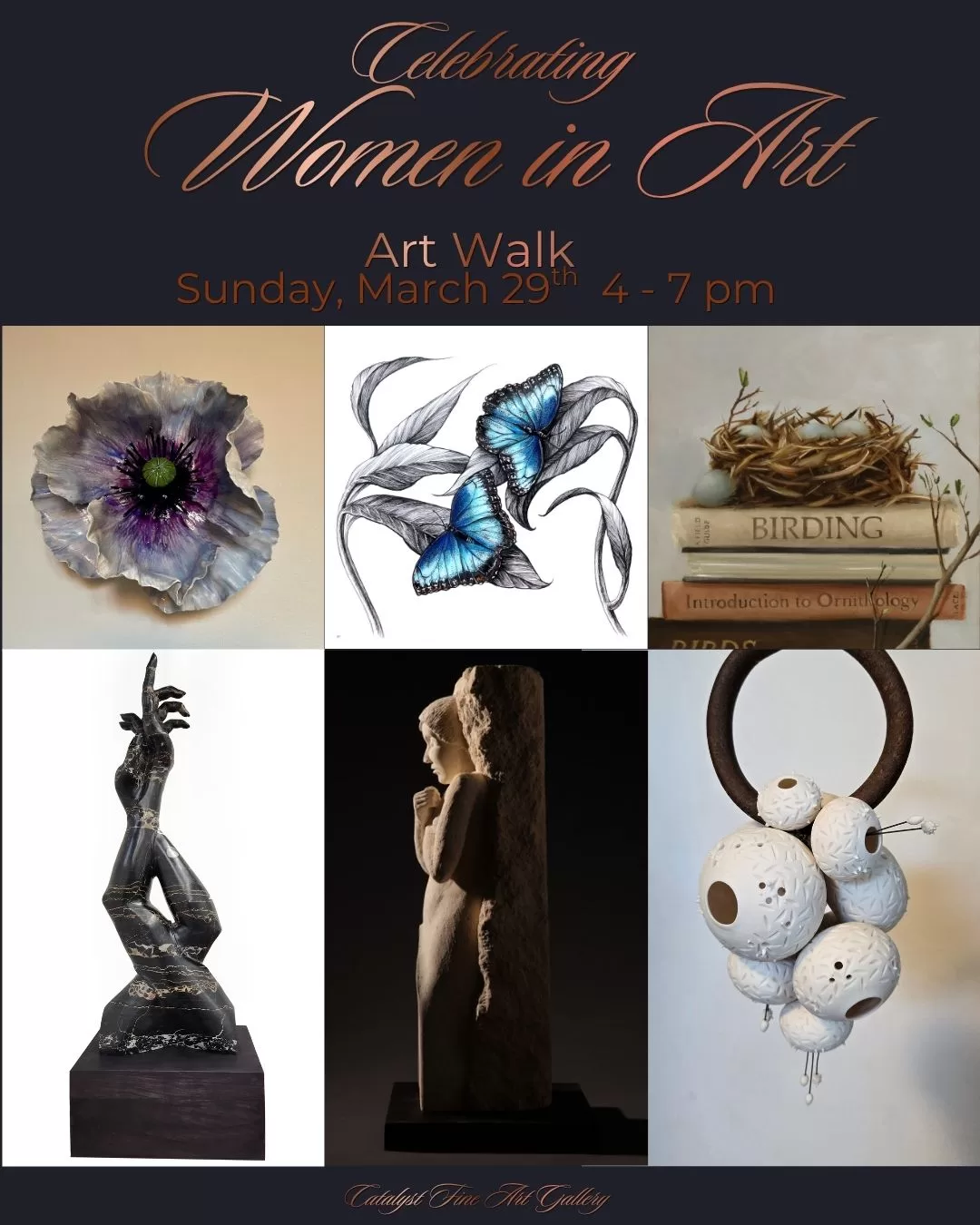 Come join us on Sunday, March 29th, from 4-6 pm for a self-guided Art Walk on the 2 floors of gallery spaces. This month we are highlighting Women in Art. Several of our featured artists will be in the gallery, visiting with guests, and sharing their artwork and inspirations. Check out artwork by Catalyst women […]